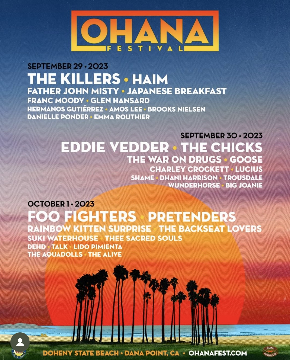 - Ohana Fest – The Orange County festival, with this year’s offering, came out this morning. I had a feeling that the Killers would be on there. Overall, this is a good lineup (Pretenders is a good get, in particular). I’ll talk about it more as we get closer to the fest itself. In the meantime, presale tickets go on sale this Thursday 4/13 at 10am. Here’s the site.