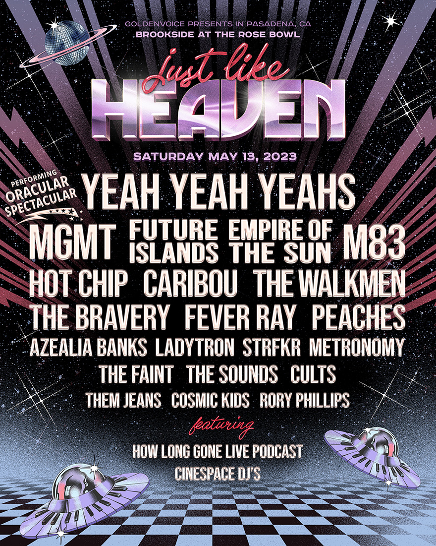 - Just Like Heaven Fest is just under a month away – For those of you older millennials that look at the Coachella lineup, and immediately start reminiscing about the good ole days, you have Just Like Heaven to look forward to. In its third year, the festival features some acts you would have expected to find on the Coachella lineup 10-15 years ago. Also put on by Goldenvoice, this Pasadena fest boasts Yeah Yeah Yeahs, MGMT, M83, Future Islands, and Empire of the Sun. I’ll cover it closer to the festival.